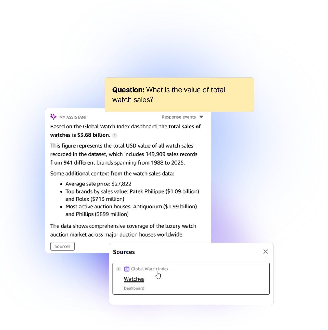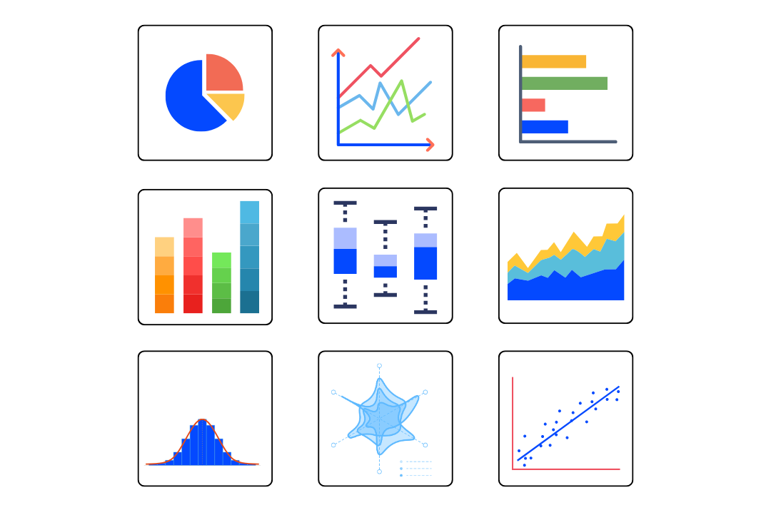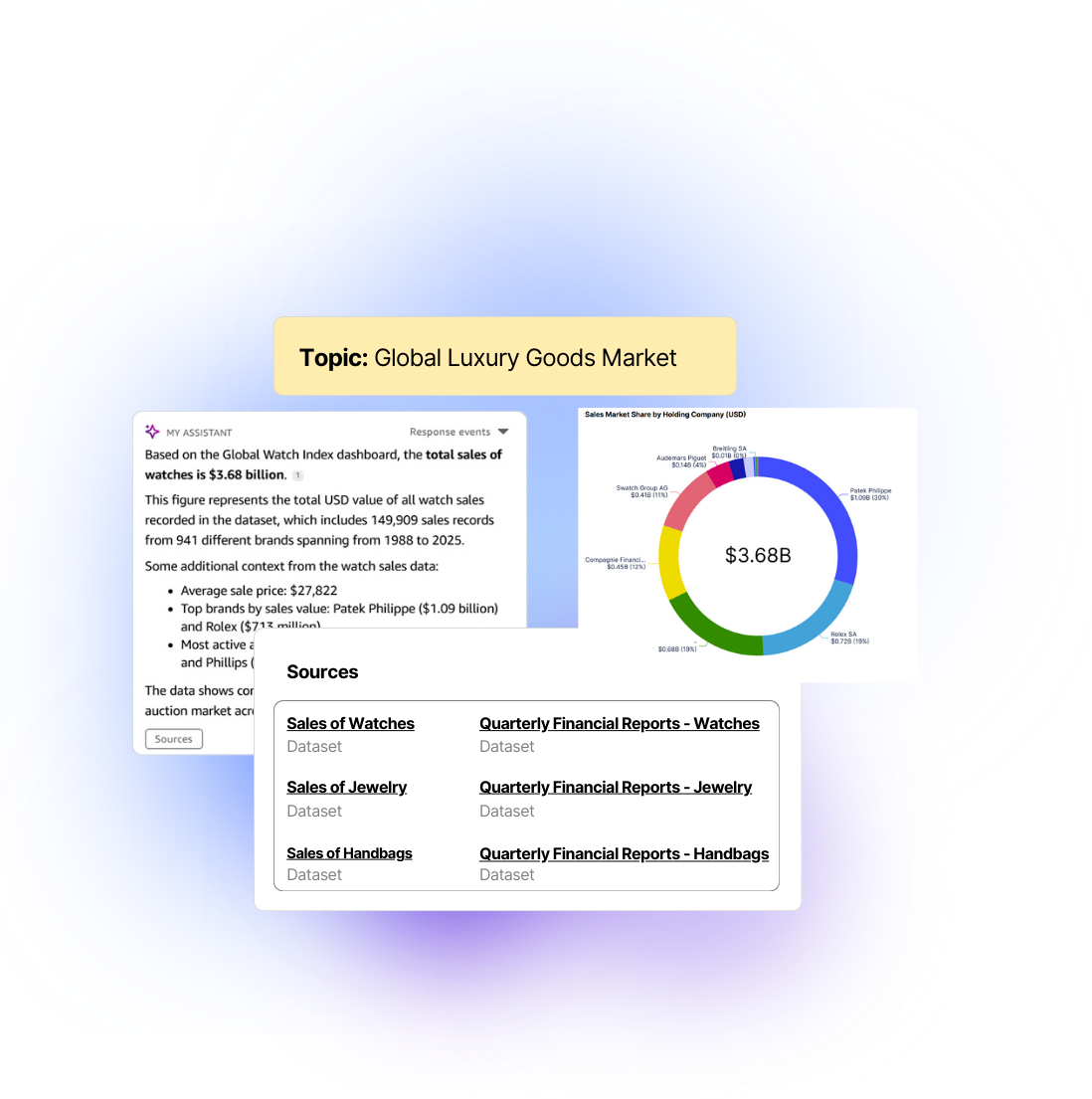 For each tracked asset type, you can choose from a selection of expert-made visual market research dashboards.